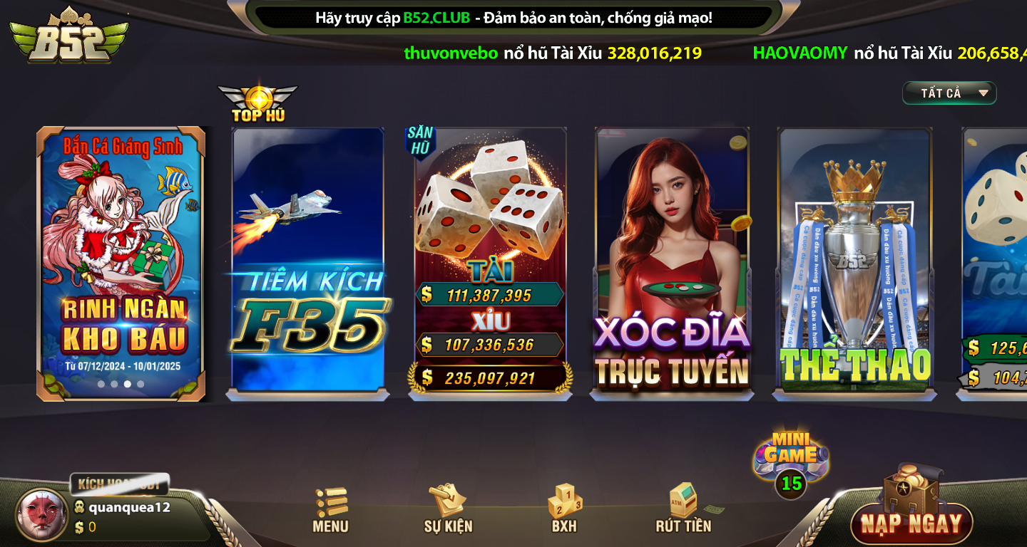 B52CLUB là cổng game đổi thưởng uy tín, được đánh giá cao trong năm 2024 nhờ vào chất lượng dịch vụ và kho game phong phú. Với các trò chơi từ bắn cá, nổ hũ đến game bài đa dạng, cổng game mang đến trải nghiệm giải trí đỉnh cao cùng tỷ lệ trả thưởng hấp dẫn. Đây là điểm đến lý tưởng cho những người yêu thích cá cược và muốn khám phá thế giới cá cược đổi thưởng an toàn và thú vị.
